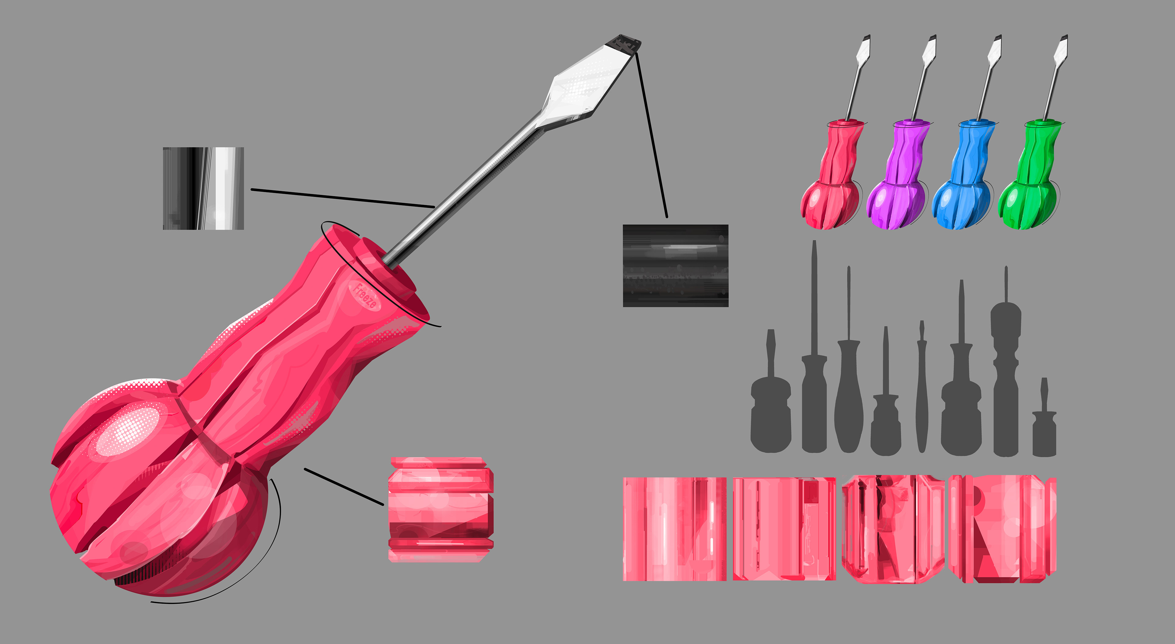 Exploration of shape language, function, and different materials. Focus on variation in metals, plastic, and wood, and how light effects them.